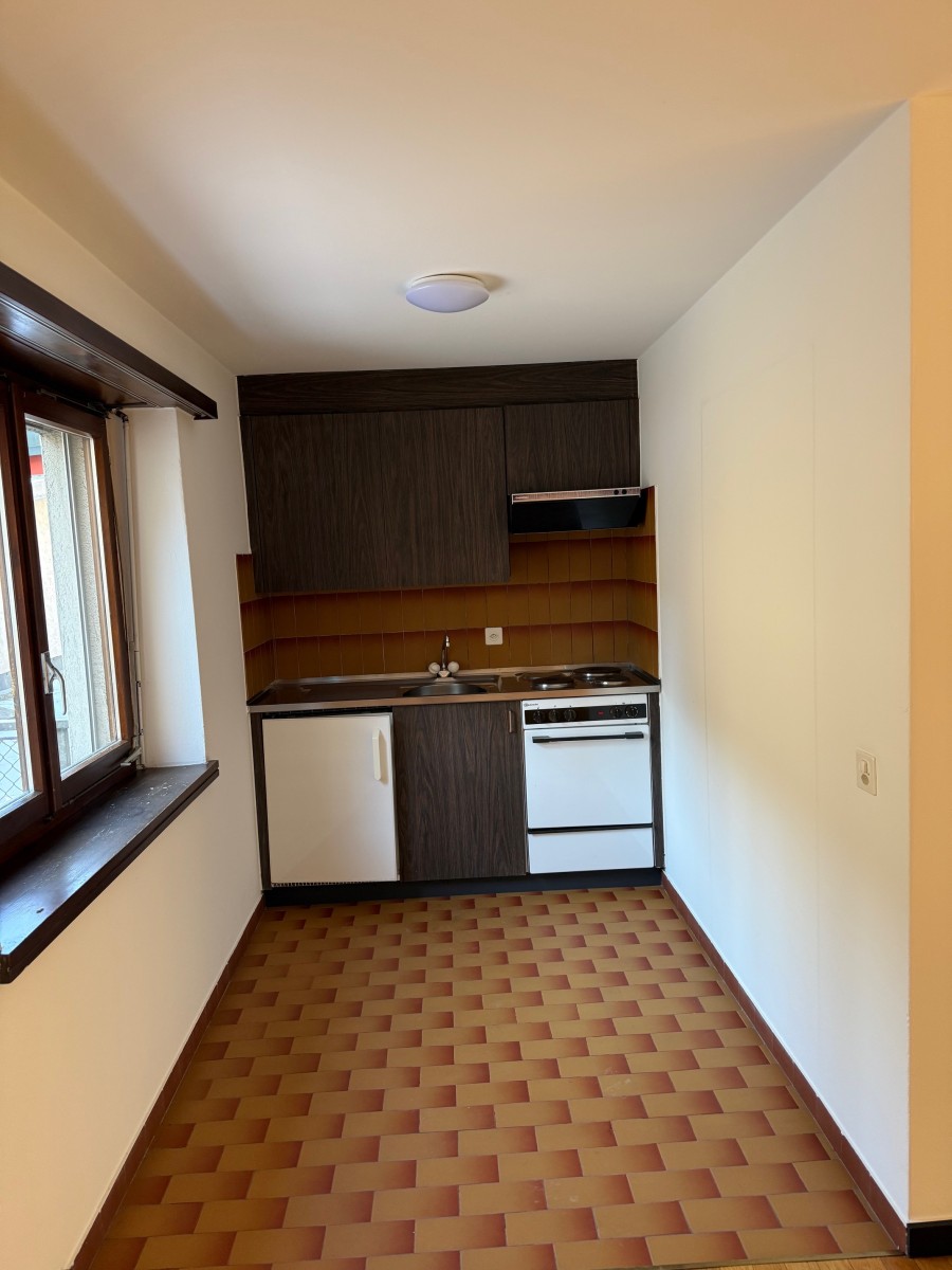 Appartamento non ammobiliato 1.5 locali, così composto: stanza - soggiorno con cucinino + wc con doccia, balcone, lavanderia in comune, ascensore e giardino in comune.