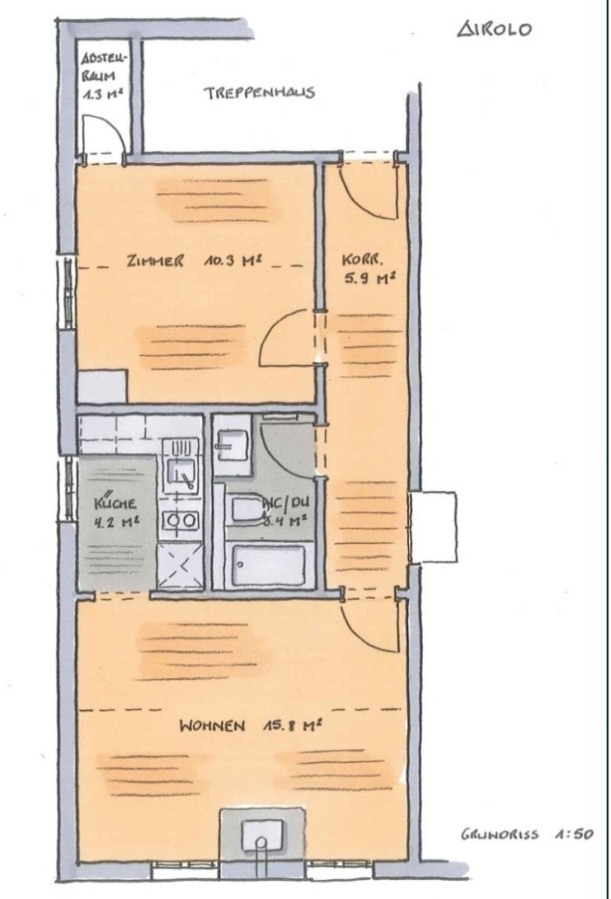 Appartamento di 2.5 locali, ristrutturato, ammobiliato, così composto: 1 camera, cucina con moderni elettrodomestici, luminoso soggiorno, bagno/WC, cantina, 1 parcheggio coperto su richiesta ( CHF 89.-/mese)